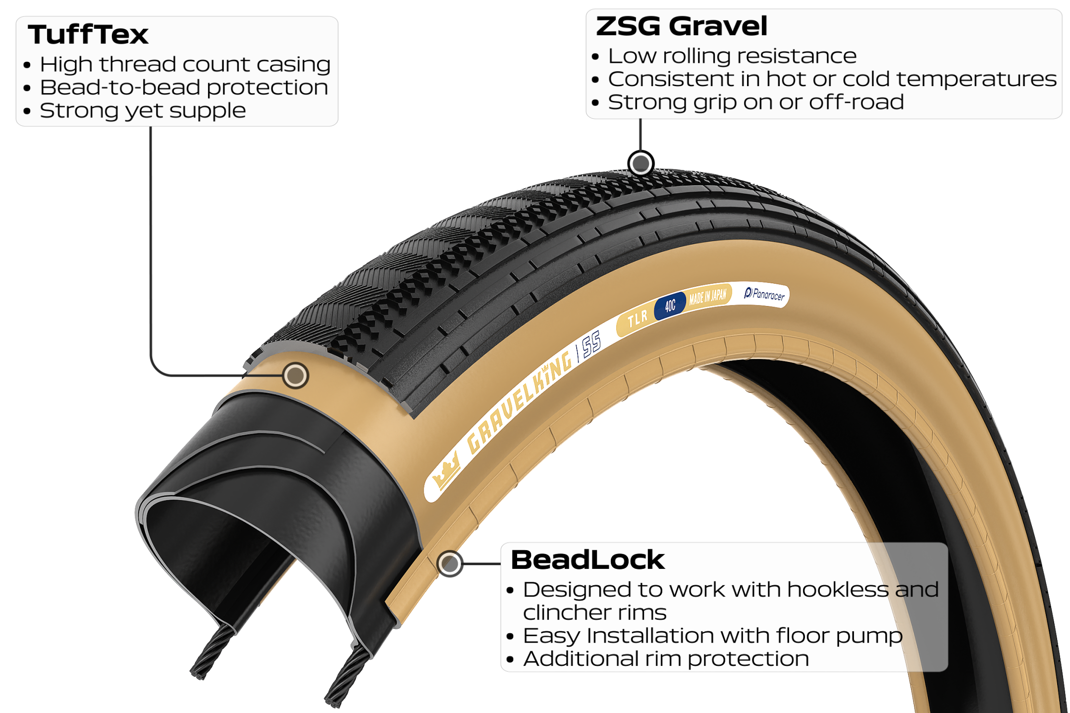 In the decade since we introduced GRAVELKING, the gravel market has evolved significantly. The ALL NEW GRAVELKING is equipped with cutting-edge technologies exclusively developed by our company: 'ZSG Gravel Compound,' 'TuffTex,' and 'BeadLock.' This next-generation tire aims to surpass its predecessor by delivering unparalleled performance, boasting low rolling resistance, puncture resistance, and a supremely smooth riding experience.