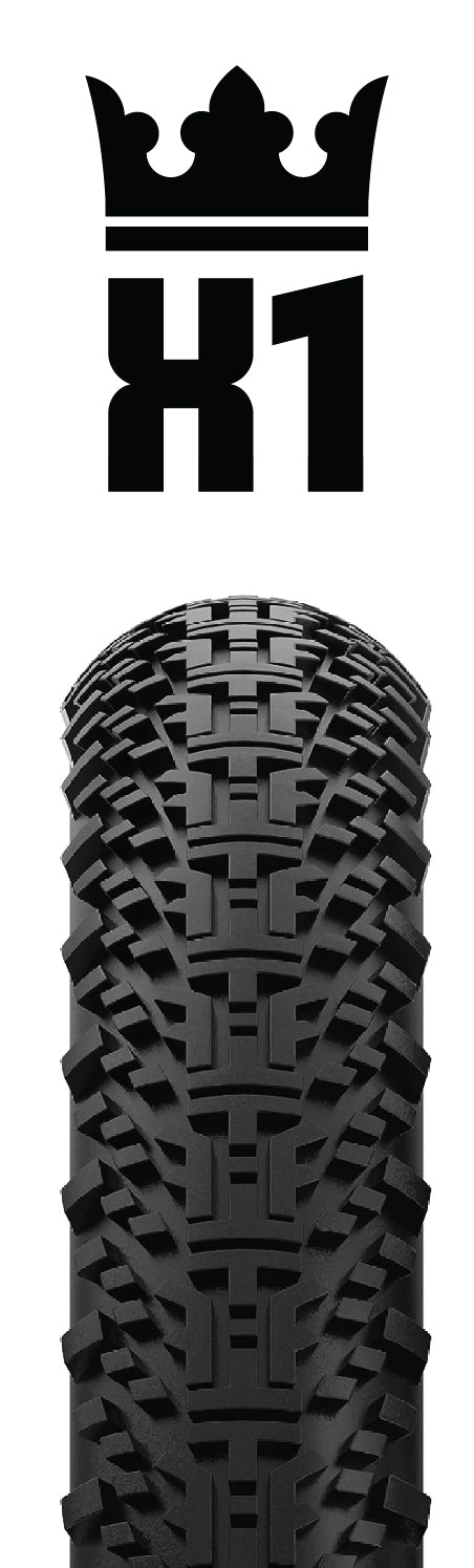 Introducing the latest addition to our lineup: the 'X1'. Designed as the next evolution of GRAVELKING with a more aggressive and race-oriented approach. From on-road to off-road adventures, commuting to gravel trails, and rough gravel to muddy terrain, the 'X1' offers a diverse range of tread patterns tailored to suit various riding styles. The X1's center tread is finely tuned for exceptional rolling speed, surpassing the rolling resistance of both the GRAVELKING SS and SK.
